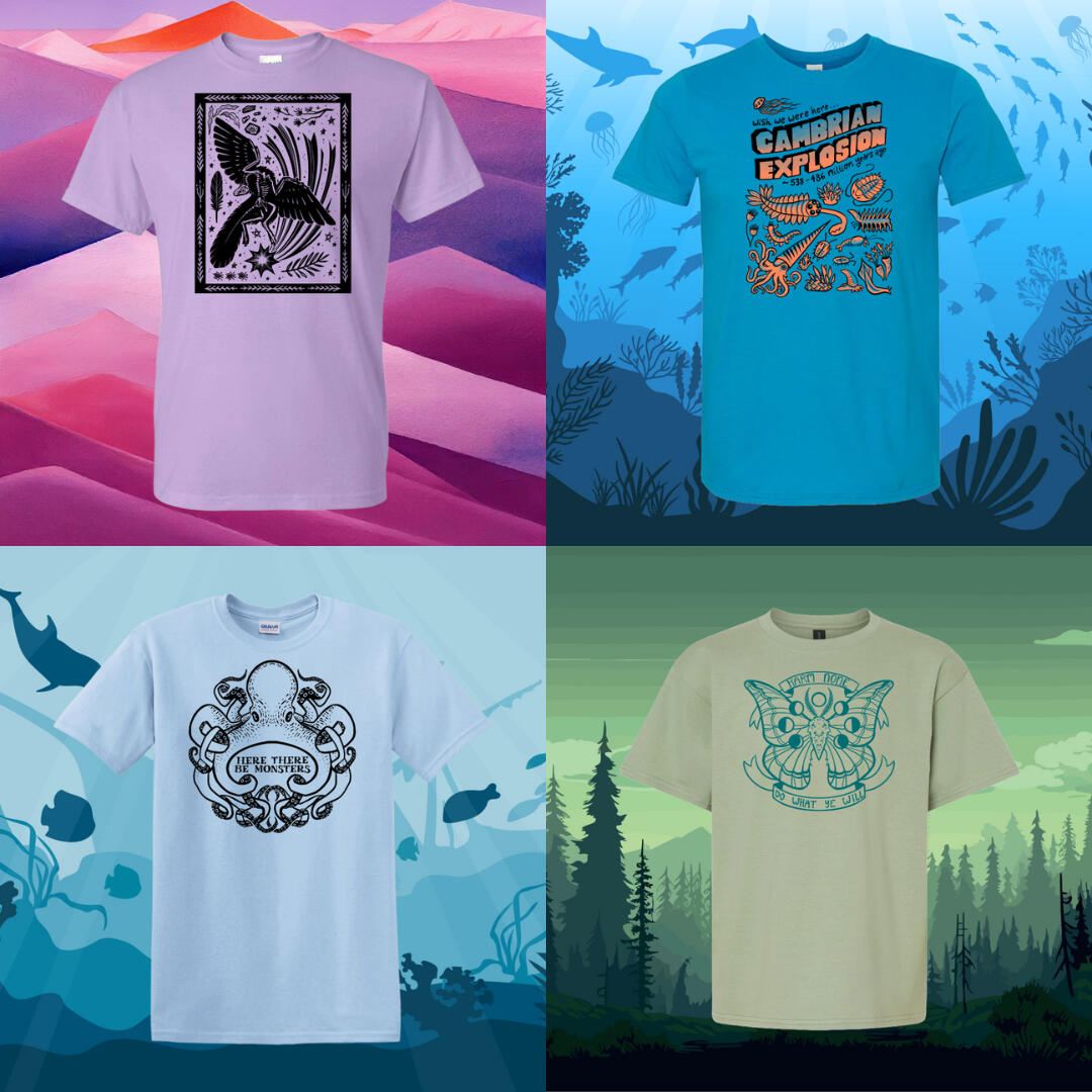 Screenprinted t-shirts are open for pre-order now!Pre-order period ends on October 1st, after which shirts will go into production. Extras may be available later, but order during the pre-order period to get 25% off your second shirt!Please keep the production timeline in mind when ordering, and note that non-pre-ordered products will ship together with pre-ordered items when they are ready. Feel free to reach out with any questions!